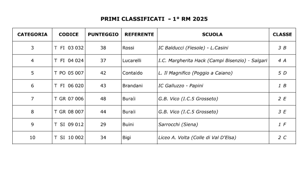 1° RM – Pubblicazione graduatorie complete per categoria: